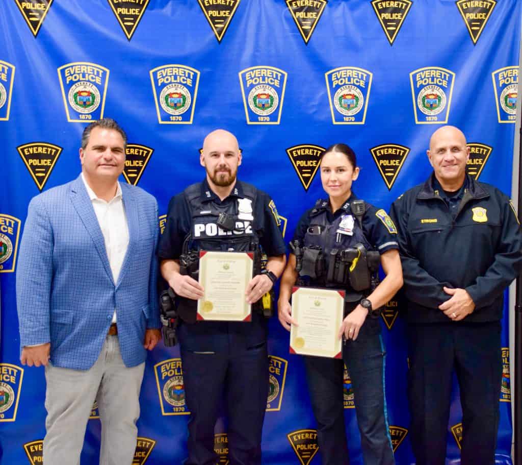 The City of Everett extends its gratitude to Officers Hall and Poirier, and to all the dedicated members of the Everett Police Department, for their continued service and unwavering commitment to keeping the community safe every day.