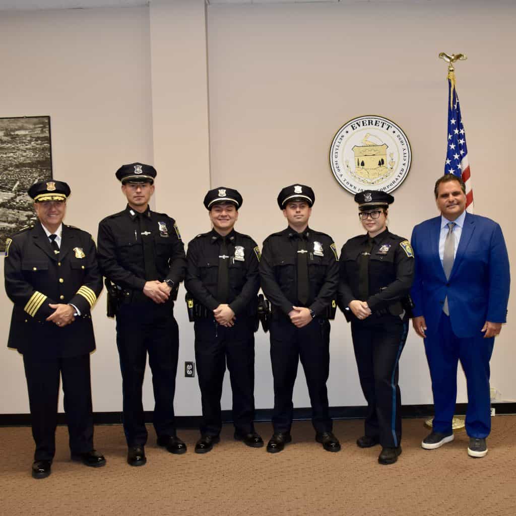 “We are fortunate to have such dedicated men and women serving our city,” said Mayor Carlo DeMaria. “I congratulate Sergeants Hornsby and MacGregor on their well-earned promotions, and I am thrilled to welcome Officers Arias, Bedoya, Carroll and Eason to our Everett Police family.”