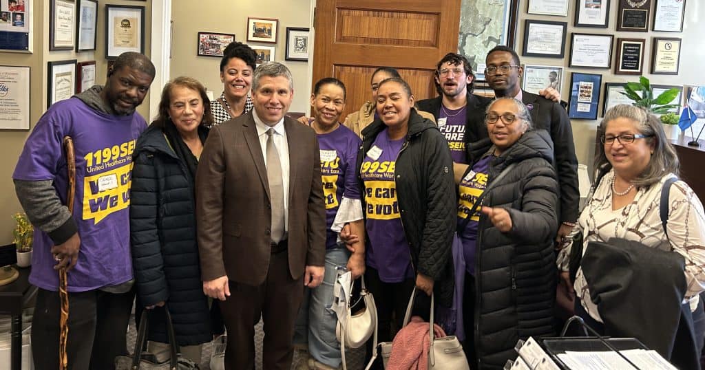 Senator Sal DiDomenico met with dozens of constituents who are SEIU members working for the MassHealth’s Personal Care Attendant (PCA) program or are individuals benefitting from the program. DiDomenico listened to them and told them, “Older adults and individuals with disabilities in my district depend on these critical services and I will do everything I can to ensure this program and its workforce gets the funding it needs and deserves.”