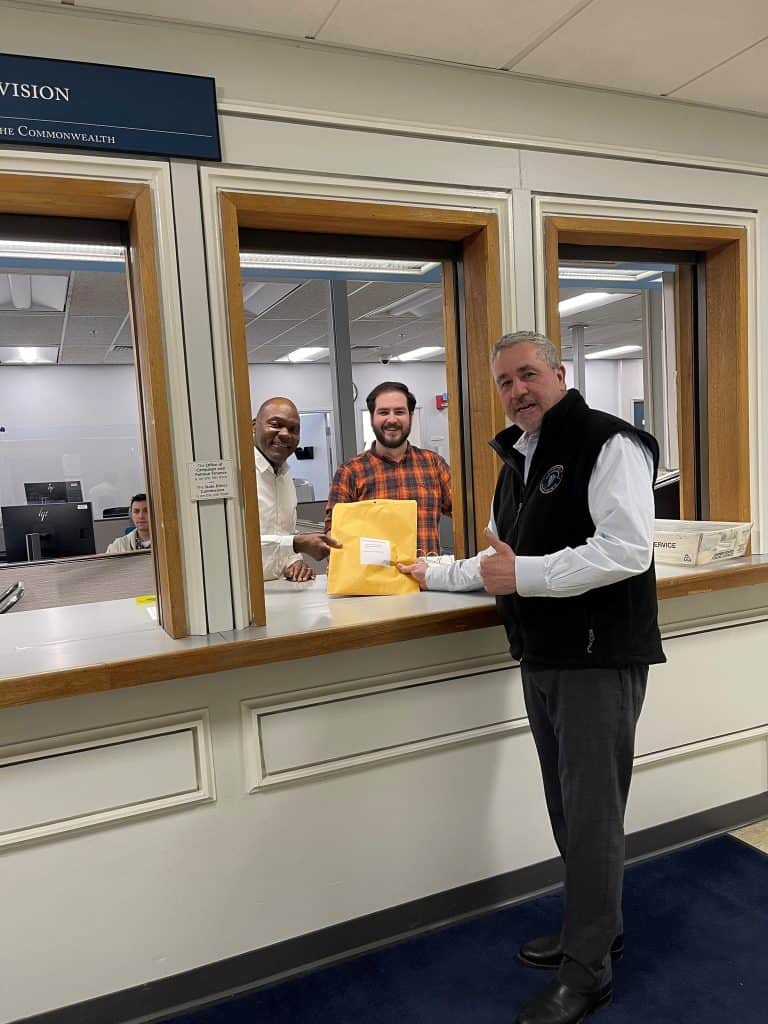 Earlier this month, Rep. Joe McGonagle visited Secretary of State William Galvin’s office to pull papers for his re-election campaign in seeking his seventh term as the State Representative for Everett. In his sixth term as State Representative, McGonagle was named House Chair of the Joint Committee on Veterans and Federal Affairs, saw his bill An Act relative to assault and battery upon a transit worker signed by Governor Maura Healey, secured $250,000 in the budget for various projects and improvements in Everett, received the DAV Legislator of the Year Award, the Marine Corps. Semper Fidelis Public Servant Award and worked with dozens of constituents on issues including housing, unemployment, immigration, disability payments and much more.