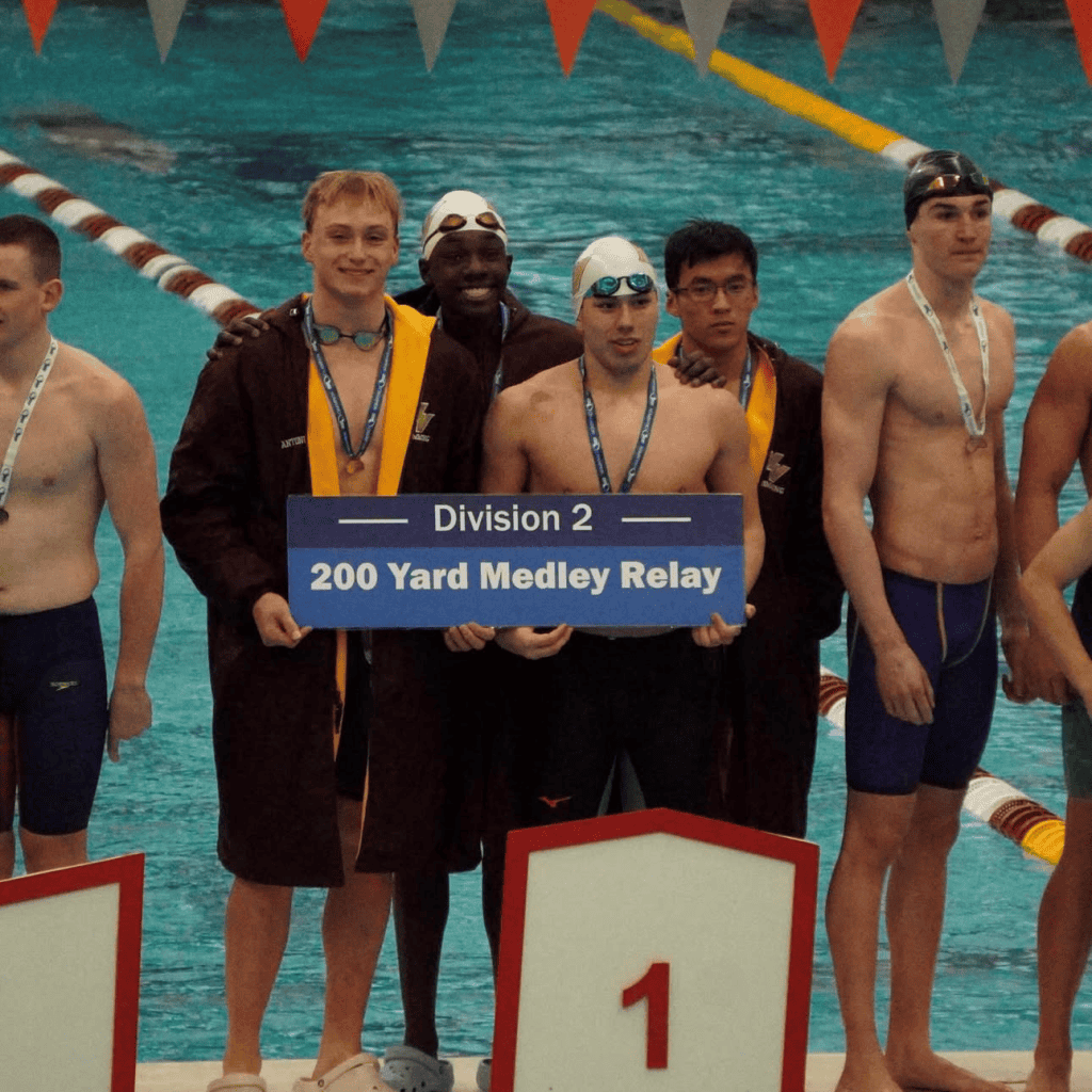 The meet opened with the 200-yard medley relay, and Mystic Valley delivered a championship performance for the ages. The quartet of Jaden Anthony (backstroke 25.86), Christian Antonucci (breaststroke 25.5), freshman Brandon Wamala (butterfly 23.03), and Dylan Phan (freestyle 21.53) stormed to first place and the Division 2 title and team record with a blazing time of 1:35.93 — the fastest time posted by any D1 or D2 team all season. Their splits were spectacular.