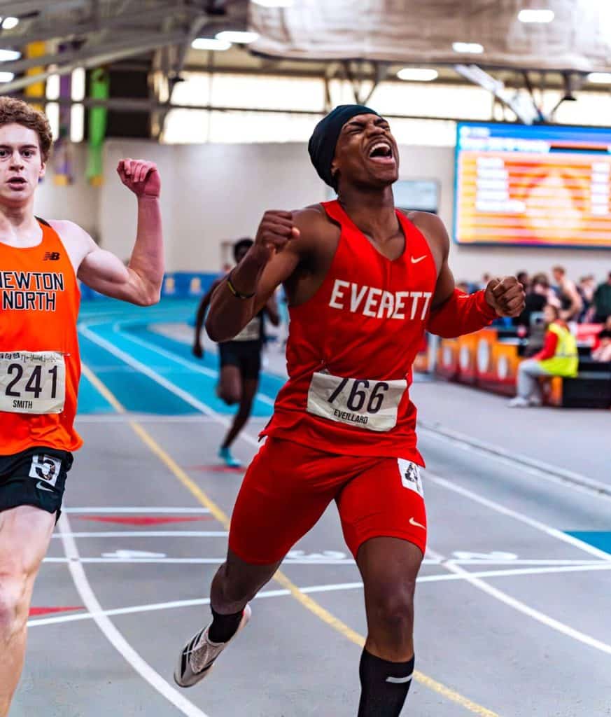 “(Eveillard) had an amazing performance,” Cimea said after the state coaches meet. “He broke his own school record in the 300 on the first day to finish third among his state’s peers in 35.59 seconds, which was considerably less than his previous best of 36.14. He then finished second in the 200 (22.52) the very next day, which was another personal best. By the end of that weekend, Kayshaun moved up to third in Division 2 in the 300, or seventh overall in the entire state. He’s also No. 1 in the GBL (Greater Boston League).”