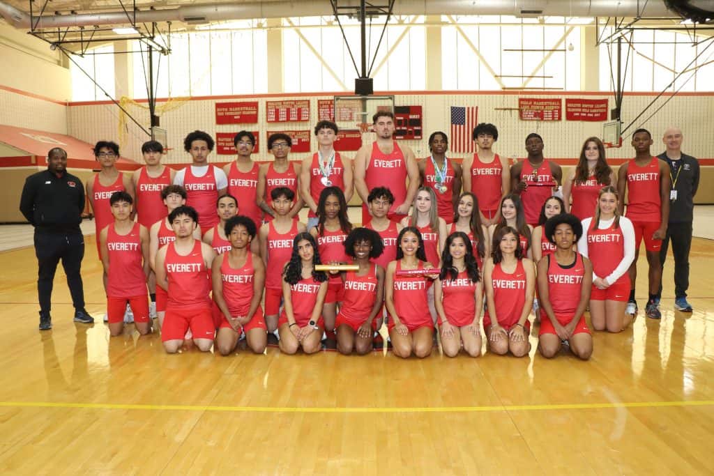 Coach Jehu Cimea’s Everett High School boys and girls indoor track teams opened up the regular season against Lynn English last Friday night (Dec. 12) at the Reggie Lewis Athletic Center with mixed results. The boys wiped out the Bulldogs to the tune of 67-9, while the girls lost a close encounter, 52-38.