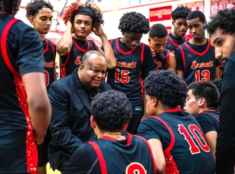 …Everett High Boys Basketball and Head Coach Gerry Boyce have put together definitely the most elaborate pregame “intros” for the Crimson Tide, complete with a darkened, no-lights gym, music and spotlights on the introduced, entering players. You gotta see it!