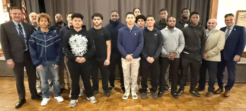 Make no mistake about it. When Malden High and Medford High ripped it up on Thanksgiving morning in Game #138 of the ancient football series, it was most definitely “for keeps.” But at midday on Monday, November 24, before the big game, the two football teams, senior players and cheerleaders, along with the Golden Tornado and Mustang coaches, broke bread together at the Annual Malden-Medford Senior Football Luncheon. The event was hosted by Medford Public Schools at the Malden Moose Hall on Broadway in Malden.