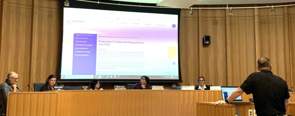 The Malden City Council’s Finance Committee convened Tuesday night for the first time since last week’s historic full City Council meeting where Mayor Gary Christenson formally requested Council approval of a ballot question calling for a Proposition 2 1/2 override. Mayor Christenson’s request for the specific amount of $5.4 million, coupled with an estimated $3 million saved with a municipal employees’ health plan switch, would cover an $8.4 million structural deficit in the FY26 city budget. The $5.4 million raised would add up to an estimated $346 in one-time increase in property tax for the average homeowner, with Malden’s single-family home’s median price at $653,000, according to figures provided by the Mayor and his team last week.