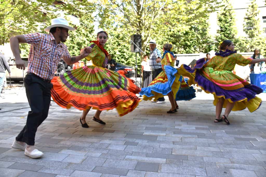 The festival was very well attended, which was not surprising, considering that it offered empanadas for $1, colorfully dressed dancers and music that made it hard to keep still. The atmosphere was joyous, with young and old alike enjoying the show. Members of the Senior Center entertained us with a stunning Latin dance routine performed with their teacher, Luis Arango, which amazed everyone. Primera Clase Latin Band played all types of rhythms; special guest singers presented various genres of Latin music. The dancer groups were spectacular. They delighted the audience with extraordinary performances of traditional dances, which showcased their colorful costumes — beautiful full circle skirts, which flared out dramatically with every turn and spin. Every movement reflected the passion and joy of the culture and drew the audience’s eyes. ¡Fantástico!