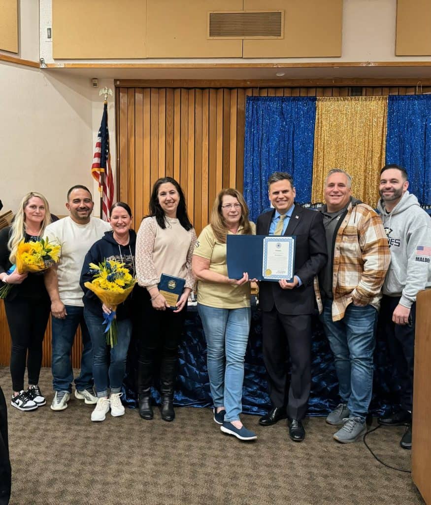 MALDEN – Mayor Gary Christenson stopped by the Annual Pop Warner Banquet to surprise longtime President Helen Kipnis on her well-deserved retirement. Helen, a lifelong Malden resident, served Pop Warner for 23 years, serving for 20 as its President. She has put in endless hours ensuring that the Pop Warner program was successful and financially stable. All the while, she never turned a child away for financial difficulties and always worked hard to teach students the values of teamwork and sportsmanship. Helen will be remembered for keeping coaches, board members and parents in line, and holding Pop Warner to higher standards than any other youth football program in Eastern Massachusetts. Mayor Christenson presented Helen with a citation on behalf of the City of Malden and thanked her for her contributions to our youth and our city.