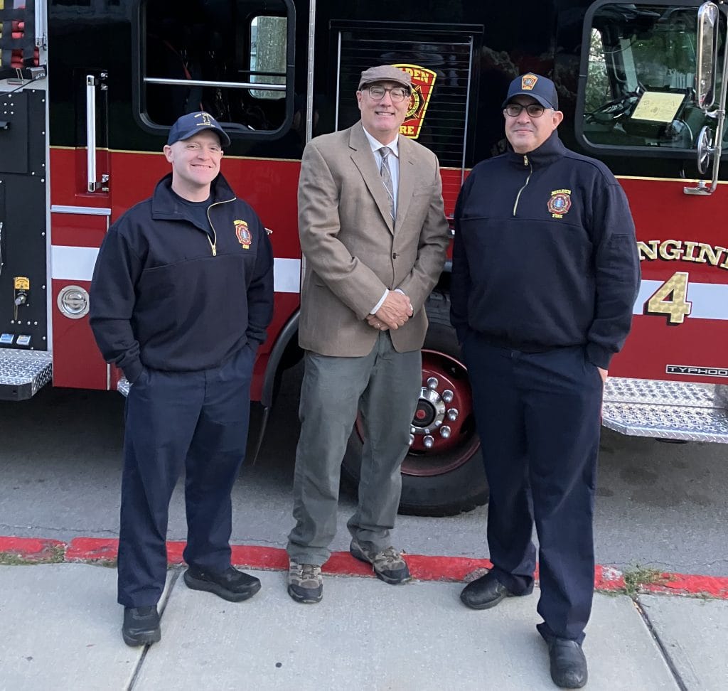 The Professional Fire Fighters of Massachusetts (PFFM) has endorsed current Malden Ward 6 Councillor Stephen Winslow in his campaign for re-election. Malden Firefighters Local 902 serves as the local AFL-CIO unit of the PFFM. Local 902 President Ken Guiel, Firefighter Mike Ford and others recently met Councillor Winslow as he sought their endorsement. President Guiel noted that Councillor Winslow had clearly read the Local’s recent letter regarding the increase in call volumes that threatens response times as Malden’s population has rebounded this past decade. During his meeting with firefighters he showed a long-time commitment to understanding and supporting the efforts to keep Malden a top tier fire department. “Councillor Winslow clearly understands that strong support for the fire department helps not only to protect lives and property, that effort also helps keep property insurance rates lower as well.” said President Guiel. Councillor Winslow thanked the firefighters for their service to Malden and for their endorsement. “We talked about the day over the summer when I happened to be early at the scene of two small fires in Maplewood that Malden firefighters quickly put out. We joked about that coincidence, but also knew that the quick response to small, smoldering fires that passerbys called-in helped ensure the worst did not happen for a home and a local club hall. We need to ensure that level of service into the future.”