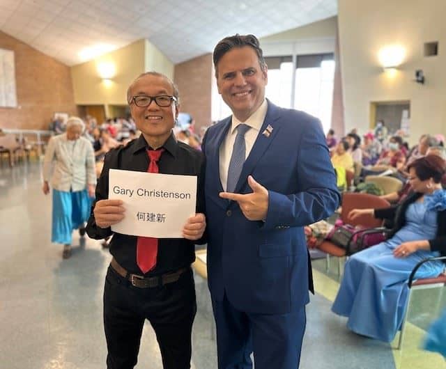 Malden Mayor Gary Christenson was pleased to unveil his newly translated name for the upcoming election ballot at the recent Chinese Talent Show held at the Senior Center. The Mayor’s official transliterated Chinese name is 何建新 and it means to build something new.