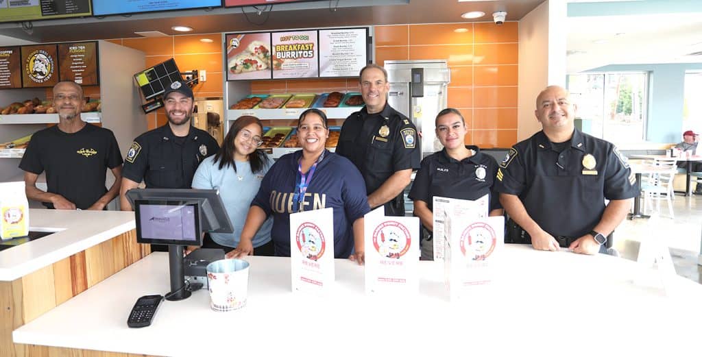 This month’s location was the Dandee Donut factory on Revere Beach Boulevard. Captain Thomas Malone and members of the Revere Police Department met with customers, offered information about locally sponsored programs, and a free RPD Coffee Mug for their desk or chosen location.