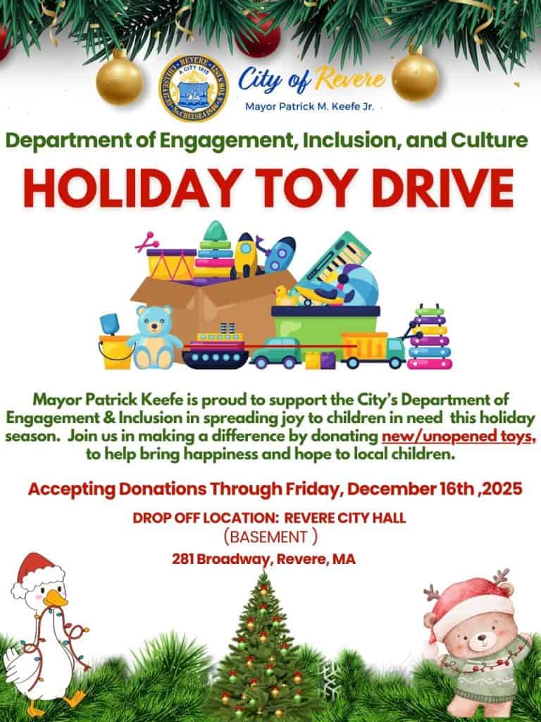 We invite community members, local organizations, and businesses to participate by donating new and unopened toys. All donated items will be distributed to children in need throughout Revere to ensure they experience the joy of the season.