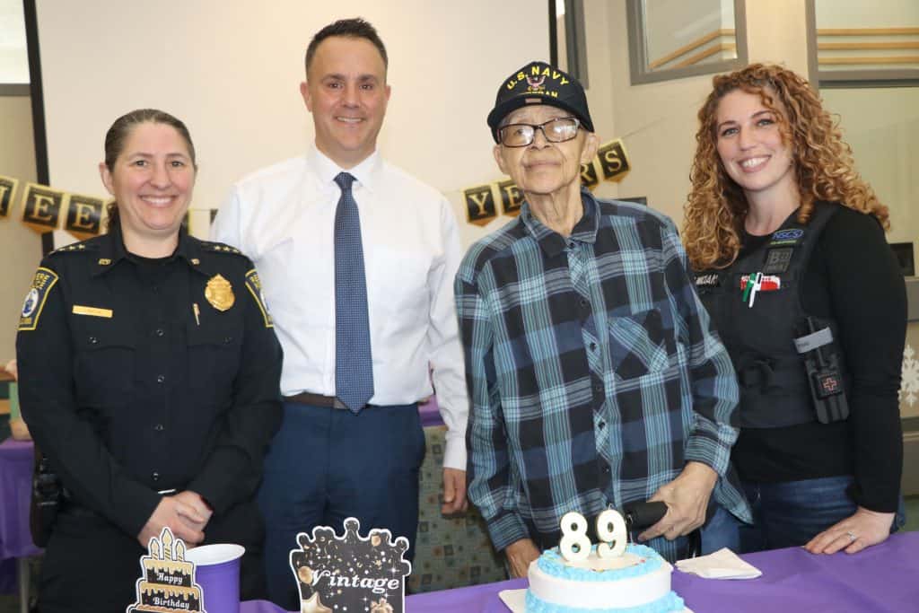 U.S. Navy Veteran Waneta West celebrated her 89th birthday with a surprise party from the Revere Police last Wednesday afternoon.