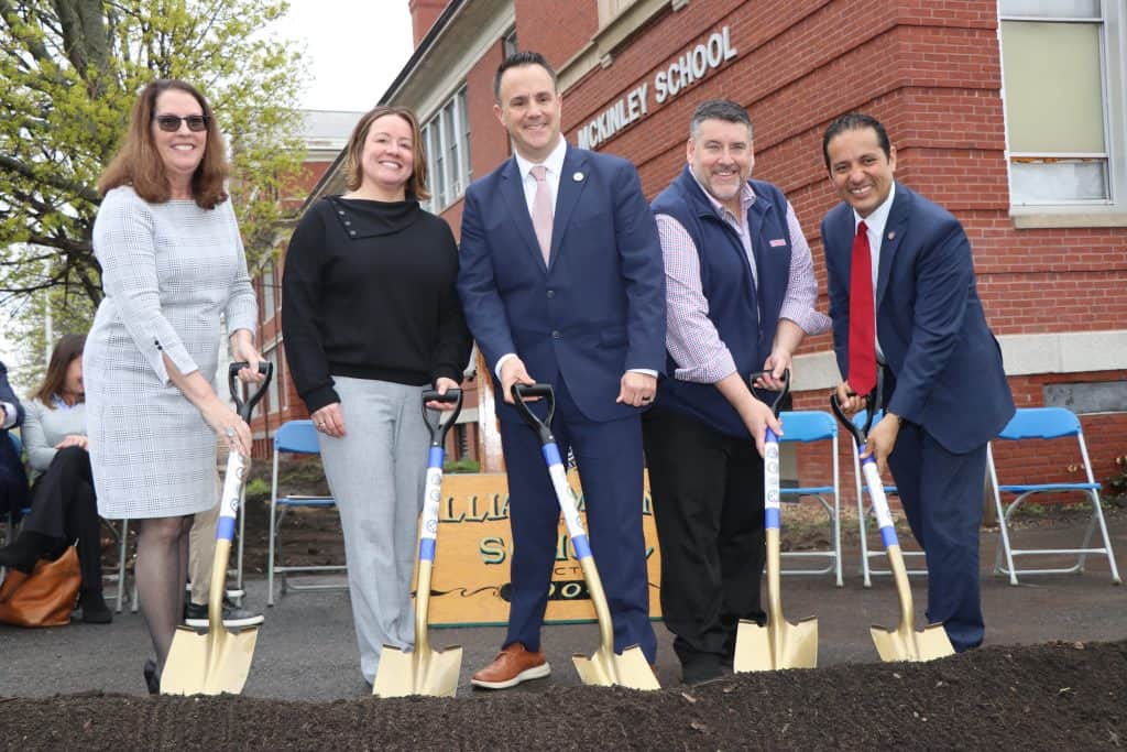 The City of Revere hosted a groundbreaking ceremony last Thursday to mark the restoration and rehabilitation of the former McKinley Elementary School. The project will renovate the vacant building at 65 Yeamans St. into a mixed-use space featuring the Metro North Regional Emergency Communications Center (MNRECC), in partnership with the City of Chelsea and Town of Winthrop, and a state-of-the-art early childhood education center for Revere’s youngest learners.