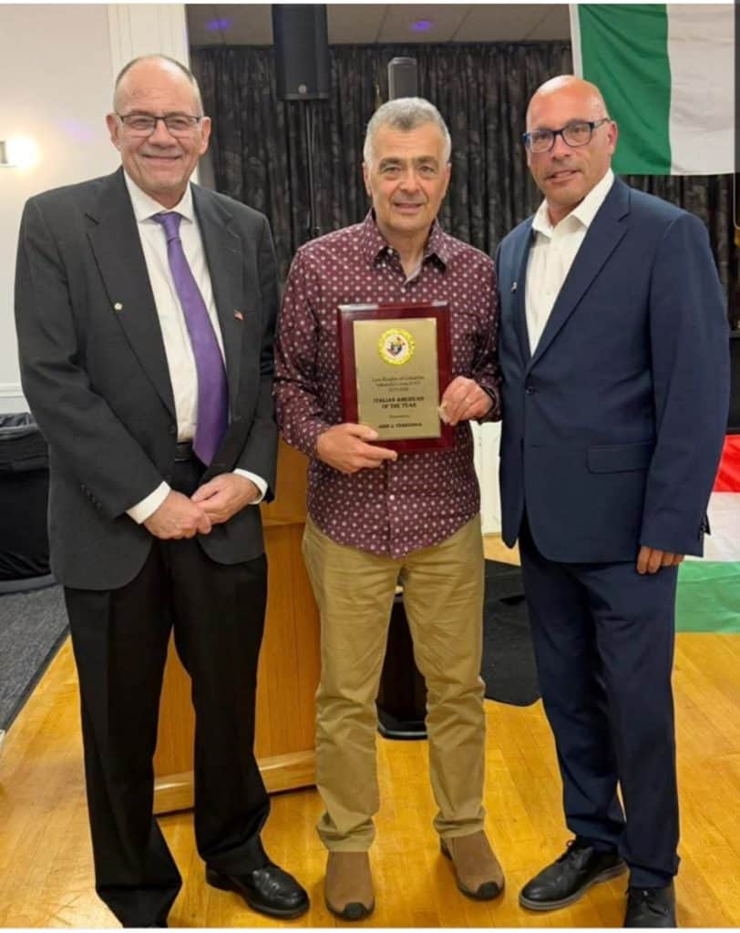 Past Grand Knight of the Revere Knights of Columbus, now a member of the Lynn Council John Verrengia, center, was named the Italian Knight of 2025. Pictured with John are Lynn Council Grand Knight Michael Scarlata (left) and North Reading Grand Knight Bruce E. Farnham during the presentation of the award from the North Reading and Lynn Councils. Congratulation John Verrengia, continue all your great work supporting all those in need. (Courtesy photo)