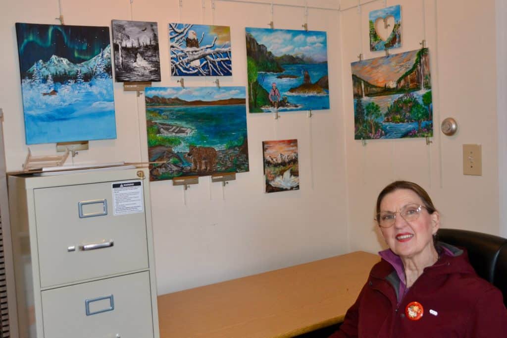 “Having lived in Alaska and been on many remote Islands throughout the Aleutian chain, I captured images of Alaska scenes from my head and heart,” Allbee said of the exhibit which can be viewed during monthly meetings and Open House Band exhibits.