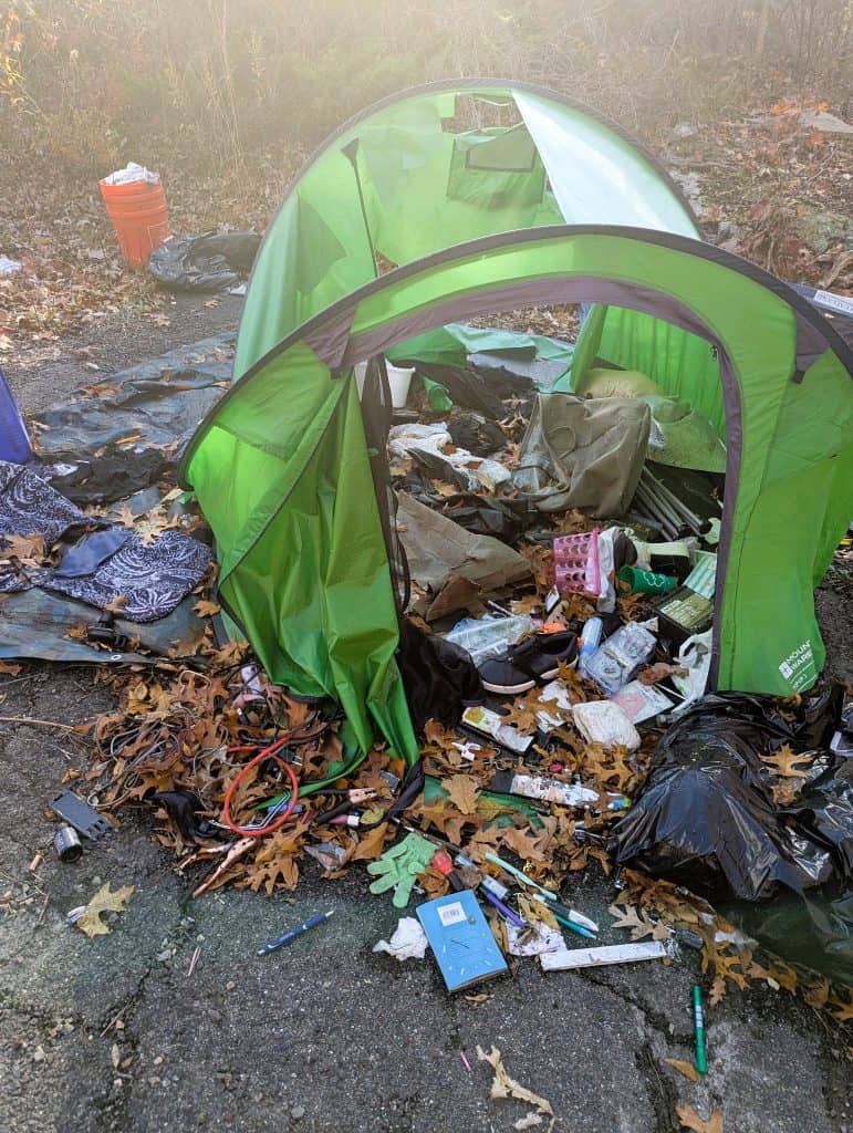 Saugus Citizens in Action – Town Meeting member organizes a small work party to clean up abandoned homeless camp on dead-end road