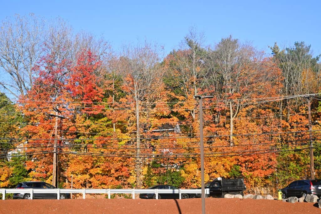 Fall foliage continues to dazzle. Sugar maples (Acer saccharum) are especially known for their vivid color, and many other maple species are also at peak color this week. While lacking the bright reds and oranges of many maples, other trees, such as lindens (Tilia spp.), honey locust (Gleditsia triacanthos) and birches (Betula spp.), are showing brilliant yellow fall color. A group of lindens in a Route 1 parking lot pictured above stands out even at night under the lights. Plantings of honey locust can be found along Central Street, especially near the rotary in Saugus Center, and in several parking lots along Route 1, and most are beginning to shed their bright yellow leaflets. Our native birches in Breakheart Reservation and elsewhere have mostly turned to gold as well.