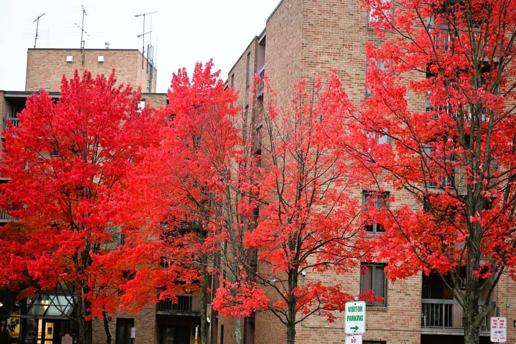 The strong winds of last Friday – Halloween – brought down many leaves from the trees. Many people spent hours raking. Fallen leaves can still be seen in many places. While some trees have lost most or even all of their foliage, there is still brilliant color in the branches of others this week.