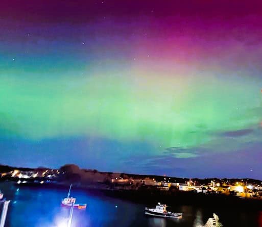 Cheryl Walton Doucette, who’s part of four generations of Saugonians, captured the Northern Lights at the Saugus Fox Hill Yacht Club at 114 Ballard St. last week (Tuesday night, Nov. 11) at around 9:30 pm. The Doucettes were on a date night and Cheryl noticed the aurora borealis from the back deck at the club. The sky was overtaken with red and green illuminations as Cheryl clicked away.