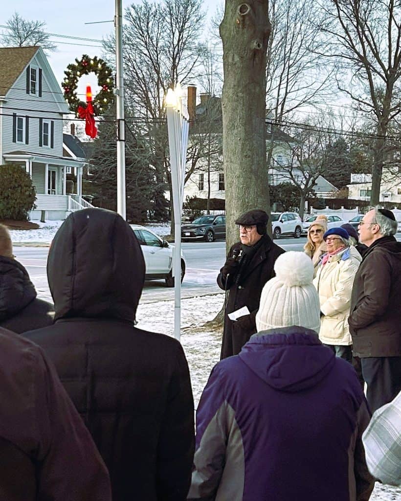 This year’s Menorah Lighting was held in Saugus Center at 4 p.m. on Monday (Dec. 15). Board of Selectmen Chair Deb Panetta welcomed all of the visitors to the celebration. Town officials present included Town Manager Scott Crabtree, Planning Board Vice Chair Jeannie Meredith, and in addition to Deb Panetta herself, Selectmen Michael Serino, Jeff Ciccolini and Anthony Cogliano.