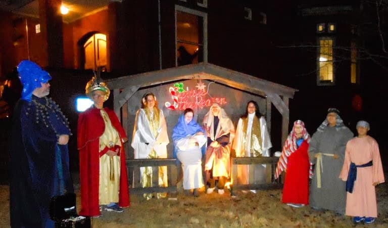 As we began promoting this idea, MEG board members, volunteers from the Assembly of God who agreed be the cast in the roles of the Holy Family, friends and families also offered their support, joining us in re-creating the Holy Family scene in welcoming Baby Jesus. Within several weeks before the Christmas holiday, the Nativity Scene was brought to “life” and stood on the front lawn of the MEG building for four very cold evenings – sometimes enduring temperatures no higher than 28 degrees!